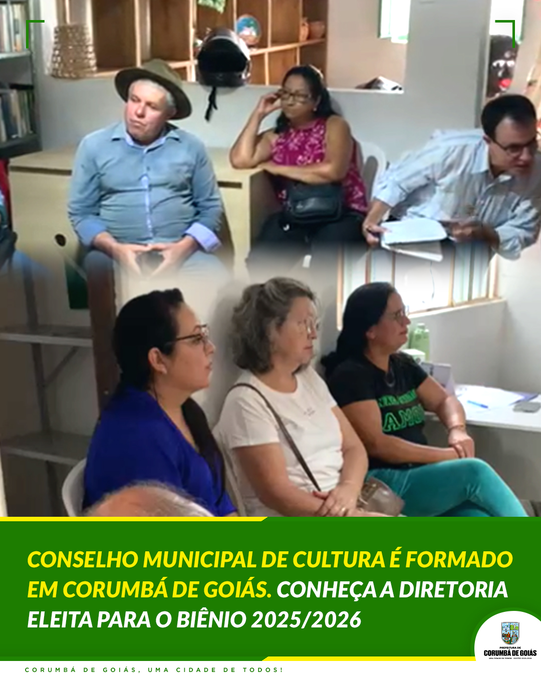 No dia 24 de setembro de 2025, às 15h, nas dependências da Secretaria Municipal de Cultura de Corumbá de Goiás, foi realizada a Primeira Assembleia Ordinária do Conselho Municipal de Cultura. A reunião teve como principais objetivos a apresentação formal dos membros do conselho e a eleição da diretoria para o biênio 2025/2026.