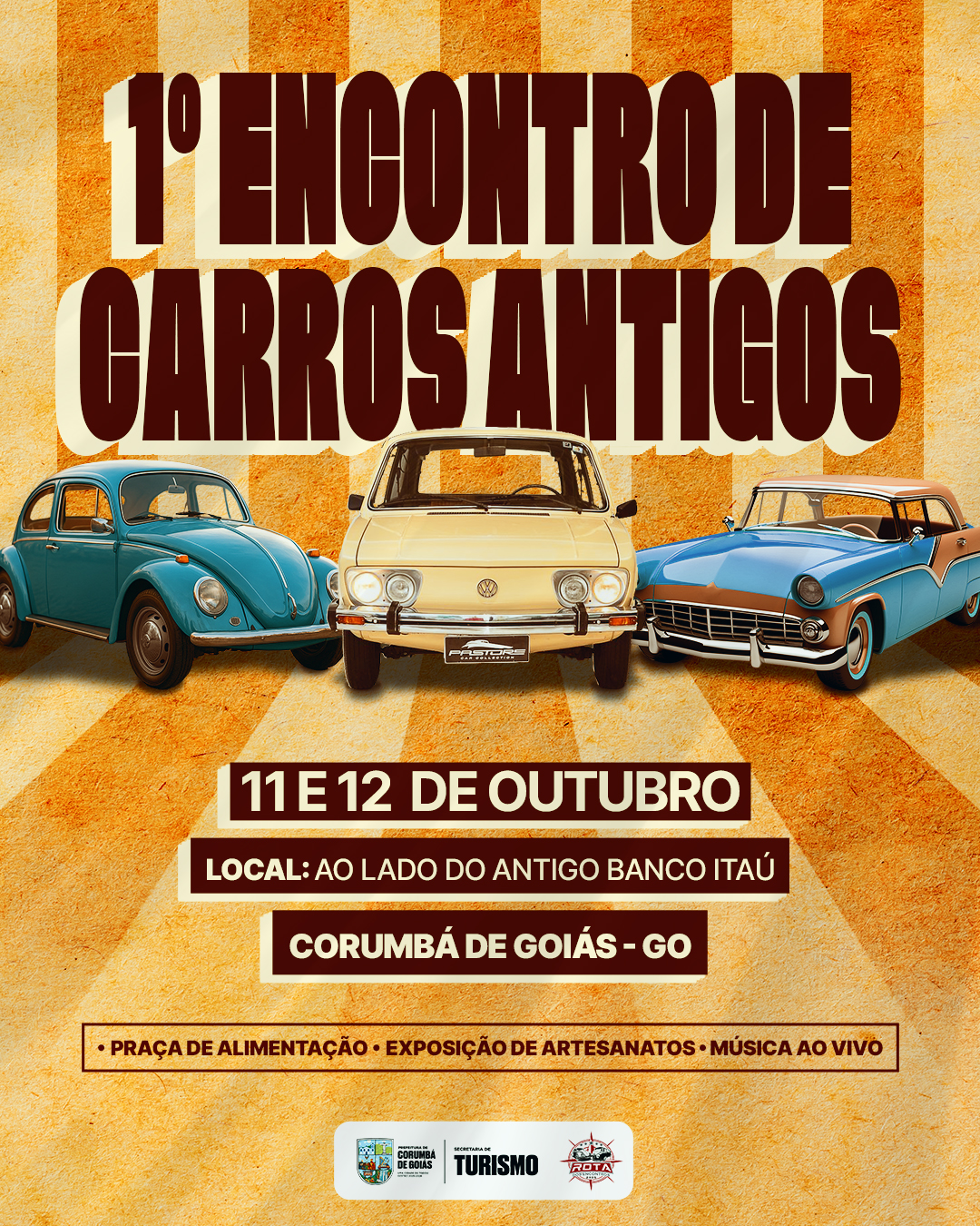 Promovido pela Secretaria de Turismo, em parceria com o Ratos do Norte Club, o Encontro de Carros Antigos em Corumbá de Goiás já tem data marcada!