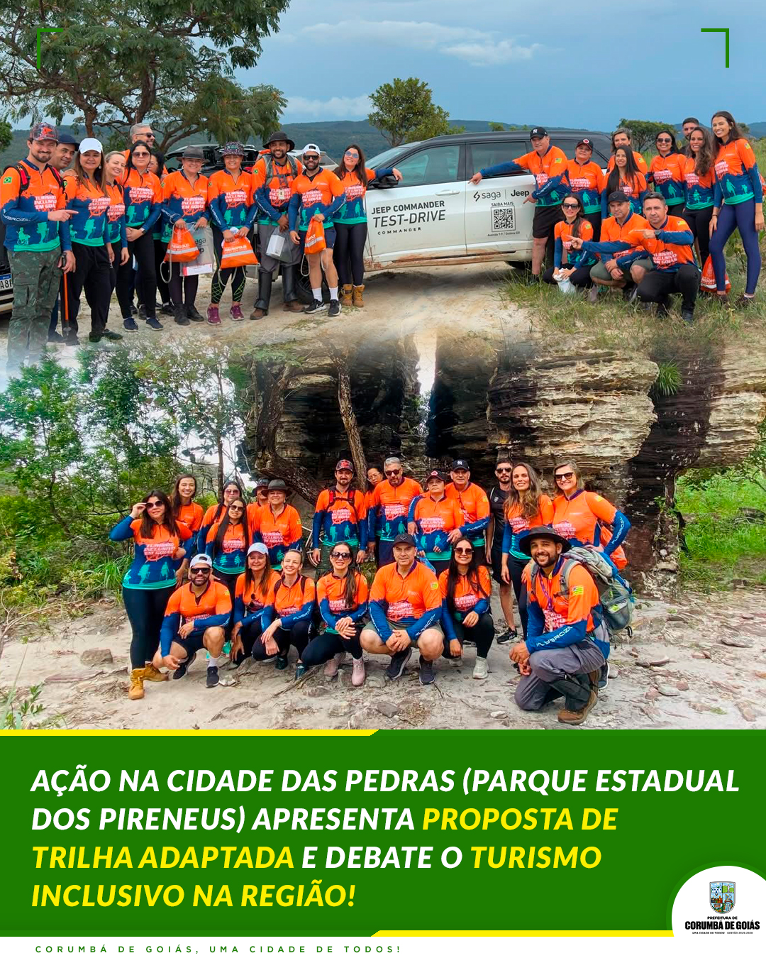 O turismo de natureza deu um passo importante rumo à acessibilidade no último domingo. A Prefeitura Municipal, por meio da Secretaria Municipal de Turismo, participou de uma ação estratégica realizada na Cidade das Pedras, em parceria com a Resoluta Soluções PCD, as Secretarias Municipais de Turismo da Serra dos Pireneus e diversos apoiadores.