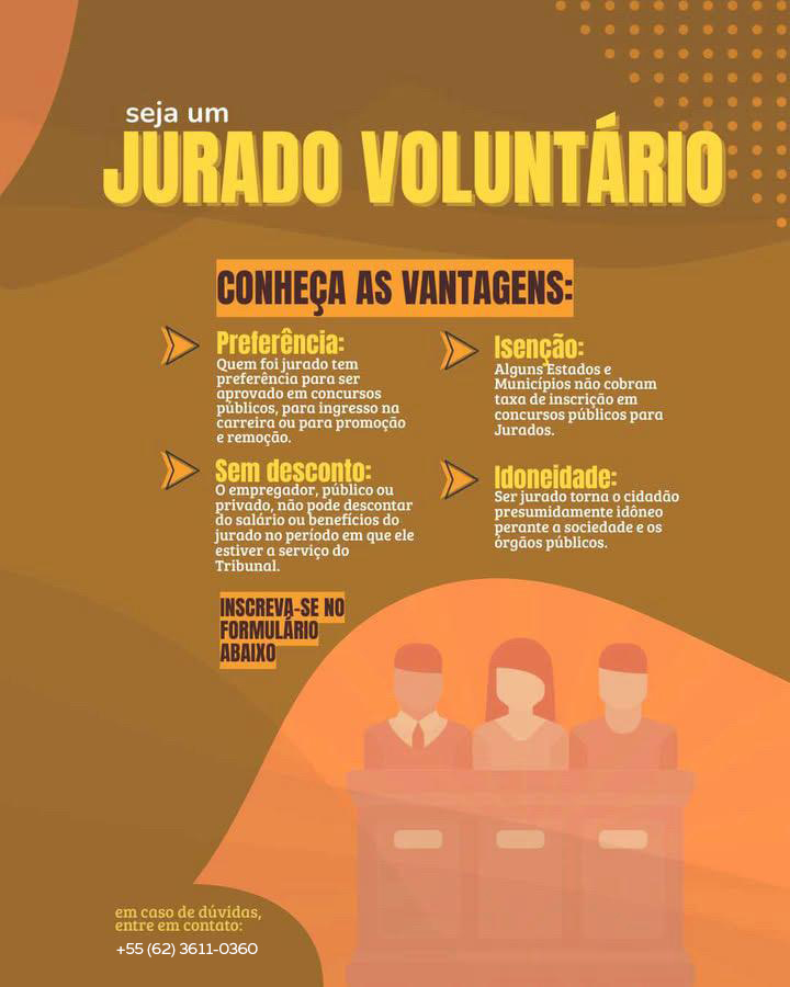 Esta é sua oportunidade de participar ativamente do nosso sistema de Justiça, exercendo um papel crucial no Tribunal do Júri.