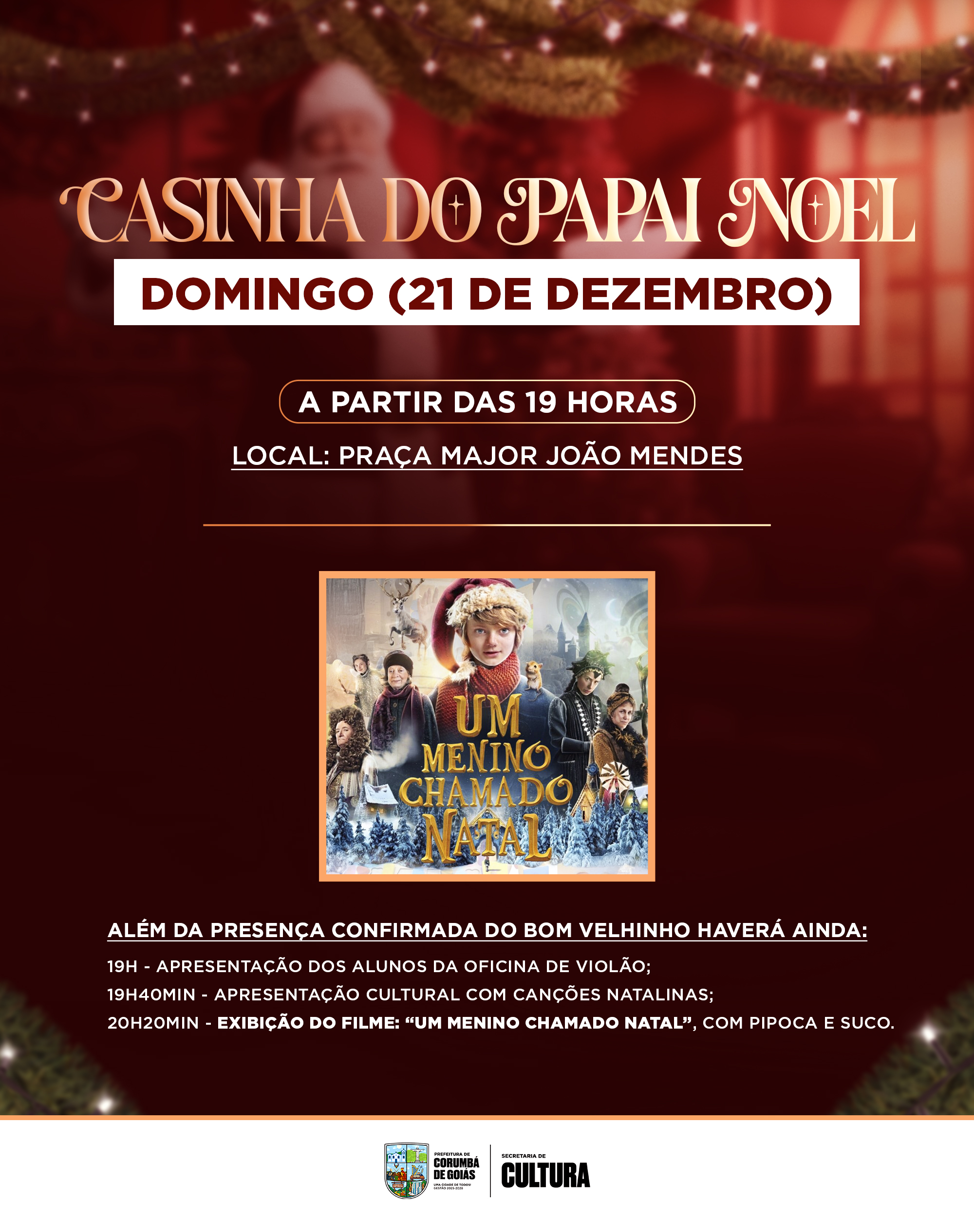 A Prefeitura Municipal, por meio da Secretaria de Cultura, preparou uma programação especial e gratuita na Casinha do Papai Noel para a noite desta quinta-feira, 21 de dezembro, na Praça Major João Mendes.