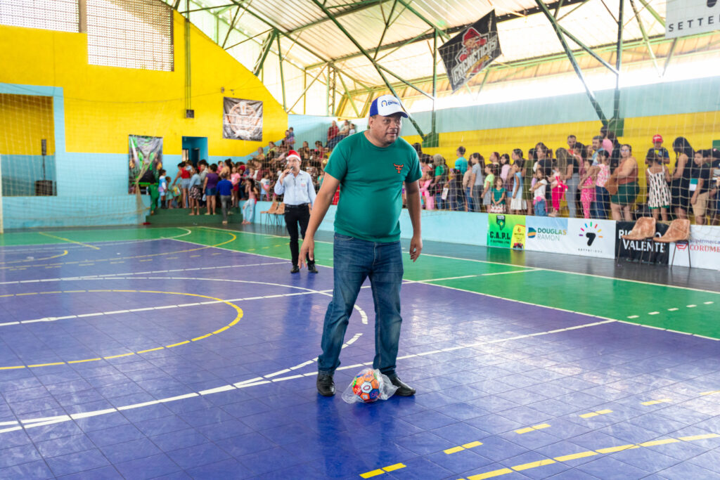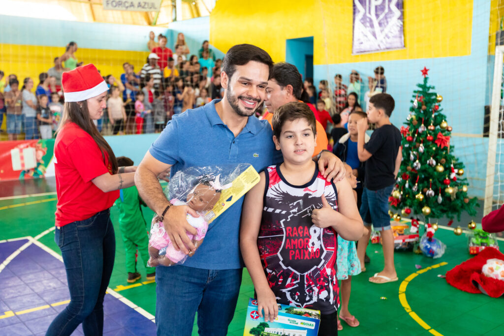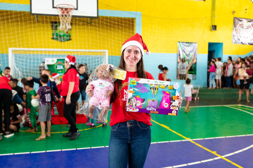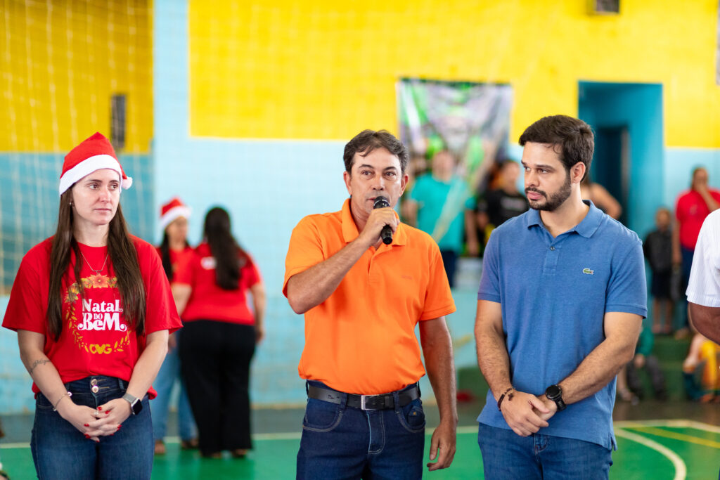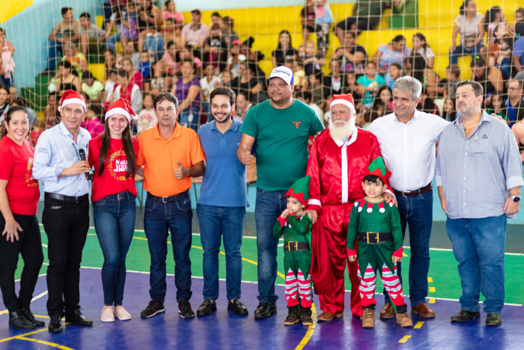 A distribuição aconteceu no Ginásio de Esportes Benedito Odilon Rocha e transformou a manhã das crianças em um momento de festa e diversão, garantindo que o Natal de centenas de famílias fosse mais feliz e especial.