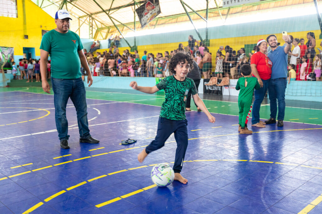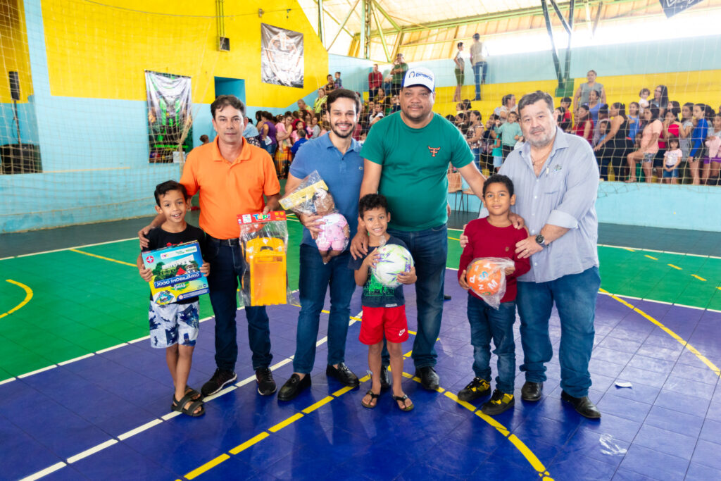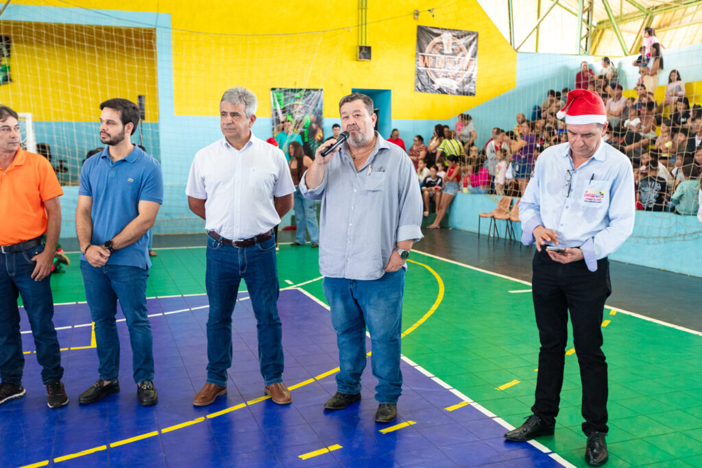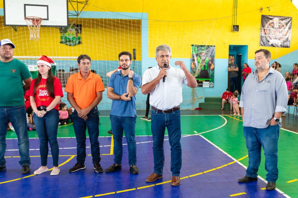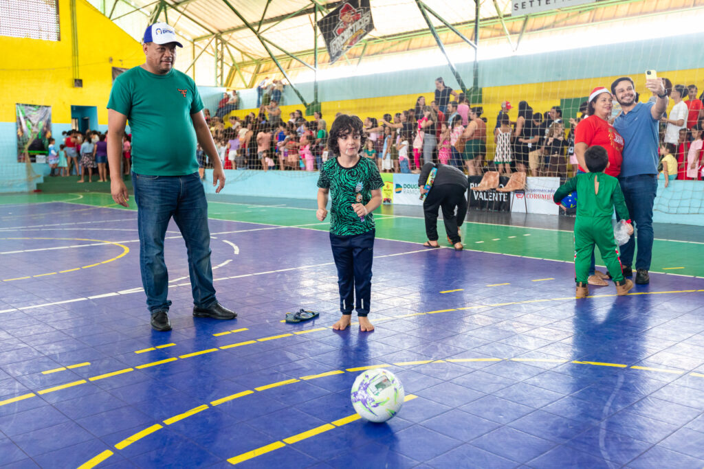 A distribuição aconteceu no Ginásio de Esportes Benedito Odilon Rocha e transformou a manhã das crianças em um momento de festa e diversão, garantindo que o Natal de centenas de famílias fosse mais feliz e especial.