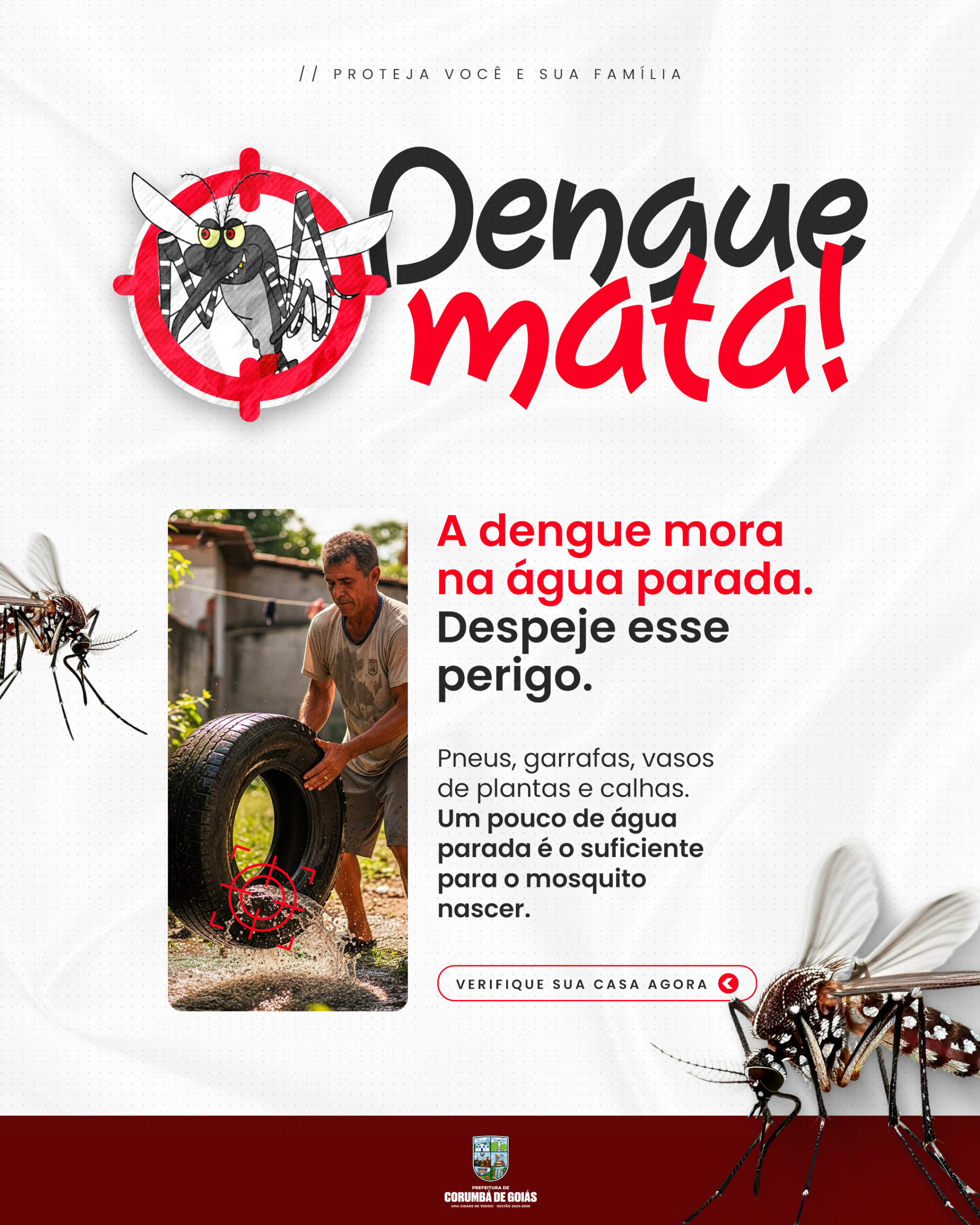 Você já vistoriou o seu quintal hoje? A Prefeitura está nas ruas cuidando da cidade, mas precisamos que você cuide da sua casa.