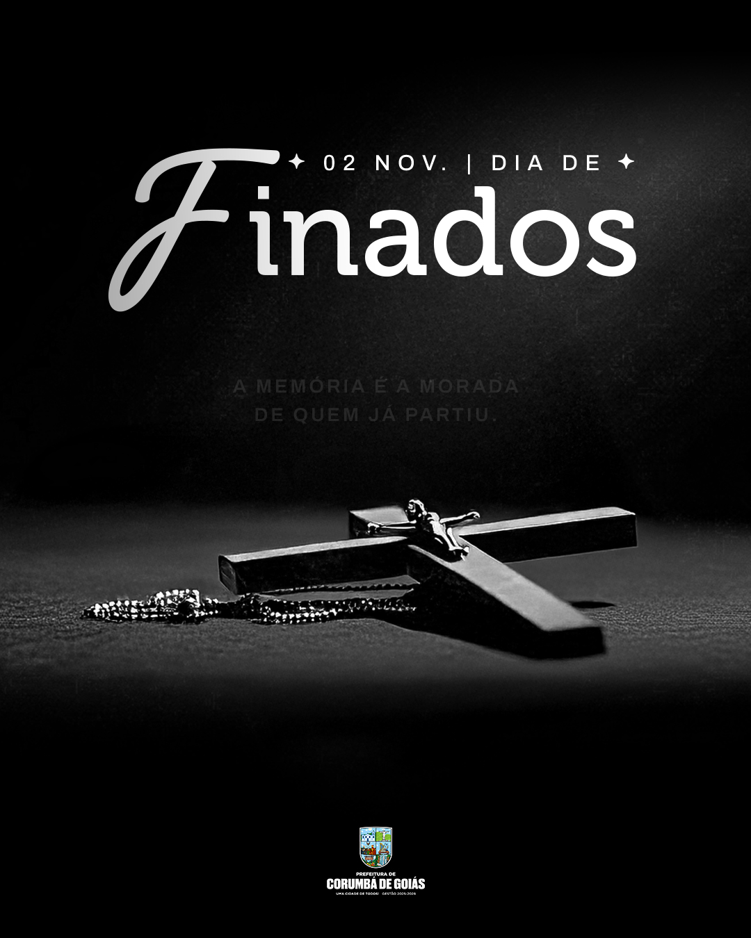 Hoje, 2 de novembro, Dia de Finados, a Prefeitura Municipal de Corumbá de Goiás presta homenagem às pessoas que partiram e expressa solidariedade às famílias enlutadas.
