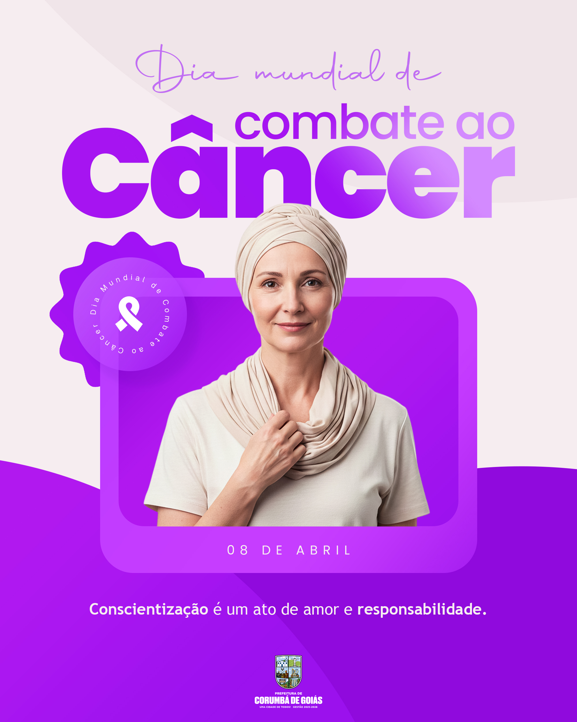 Neste dia 08 de abril, a Prefeitura de Corumbá de Goiás se une à campanha do Dia mundial de combate ao Câncer para trazer uma mensagem vital à nossa comunidade.