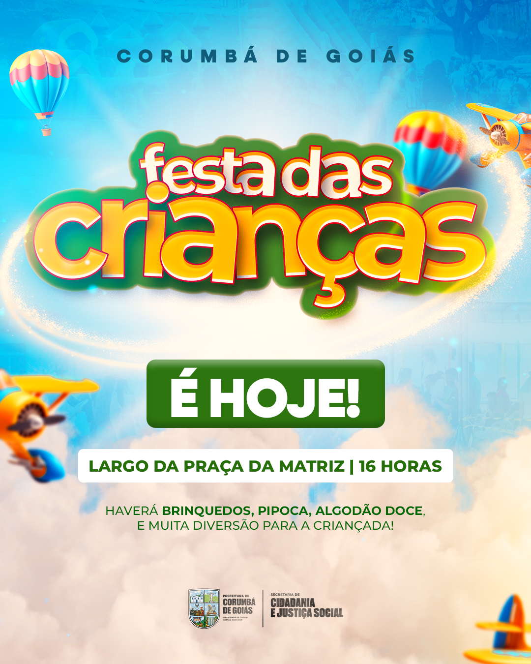 Chegou o dia mais esperado pela criançada! É com muita satisfação que a Prefeitura, por meio da Secretaria de Cidadania e Justiça Social, convida toda a comunidade para uma tarde de pura diversão e sorrisos.