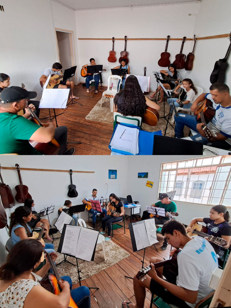 A Prefeitura Municipal, por meio da Secretaria de Cultura, segue promovendo o acesso à arte com as oficinas de violão da nossa Escola de Música, como mostram os registros dos nossos dedicados alunos.