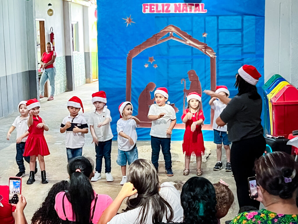 No último dia 11 de dezembro, os alunos da Escola Municipal Feliciana de Souza Leite, protagonizaram uma bela apresentação natalina, reforçando a mensagem de fé e esperança ligada ao nascimento de Jesus Cristo.