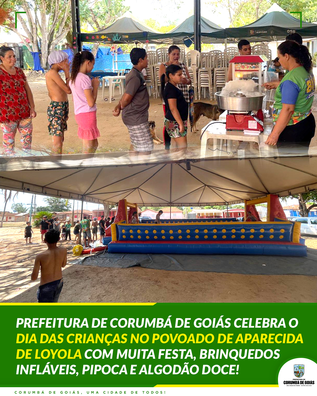 Ainda no dia 07 de outubro, a Prefeitura realizou a Festa das Crianças em Aparecida de Loyola, trazendo uma tarde completa de brincadeiras, brinquedos infláveis e muita diversão!