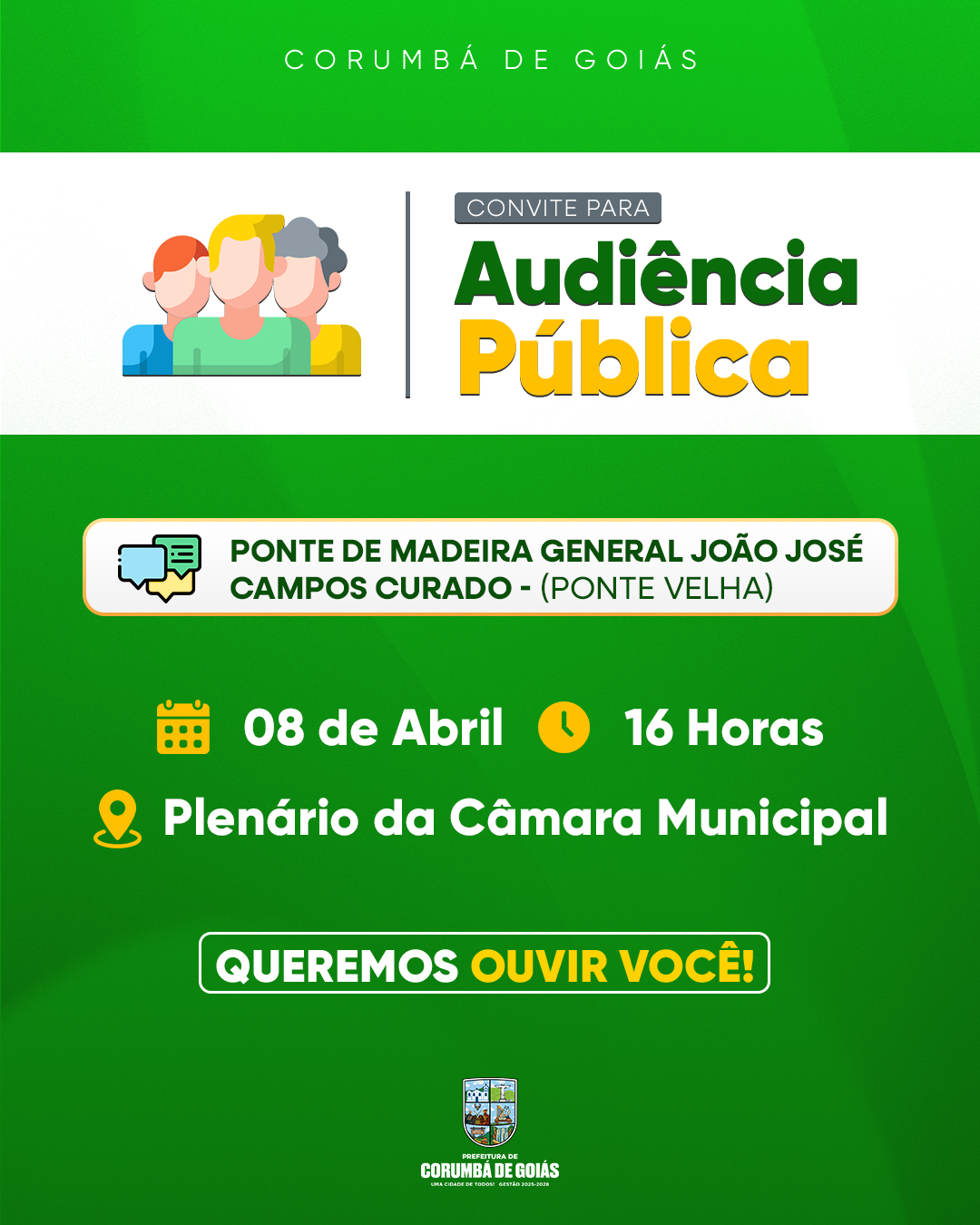 A participação popular é fundamental para a construção de uma cidade melhor para todos. Com esse foco, a Prefeitura Municipal tem a honra de convidar todos os cidadãos para uma importante Audiência Pública sobre o futuro da tradicional Ponte de Madeira General João José Campos Curado, carinhosamente conhecida como a Ponte Velha.