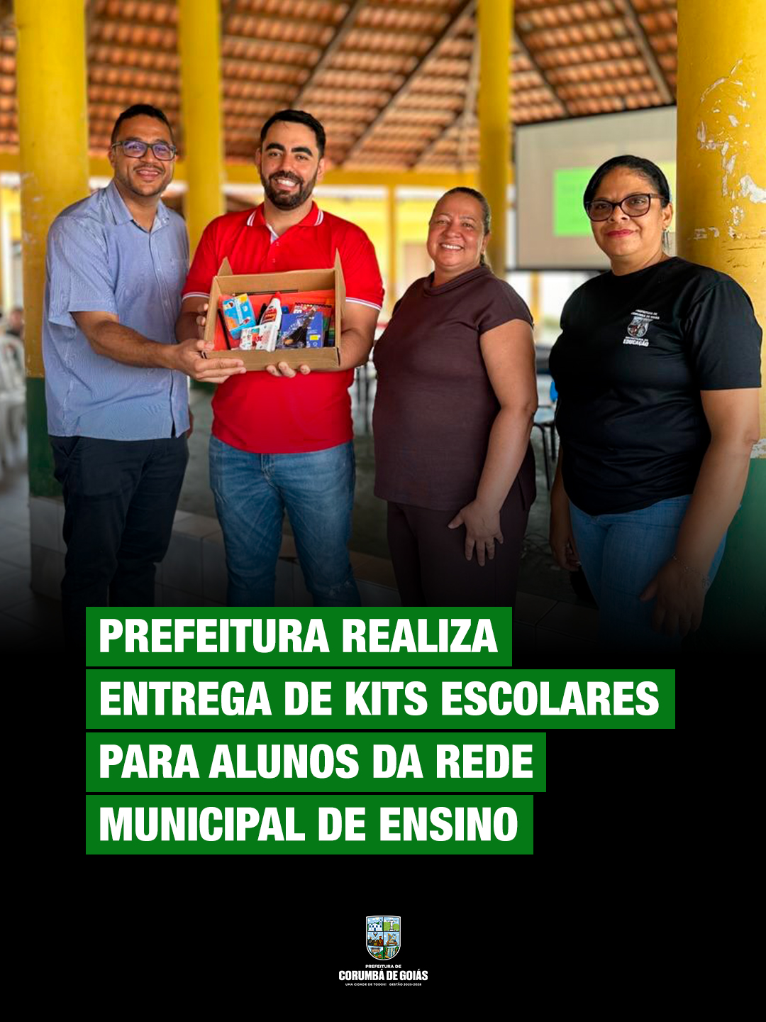 3º, 4º e 5º anos: Os estudantes receberam o Kit Escolar Municipal, adquirido com recursos próprios da Prefeitura de Corumbá de Goiás, garantindo todos os materiais essenciais para o ano letivo de 2026.